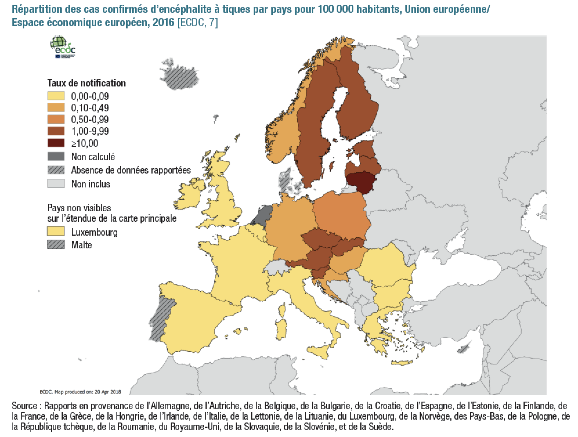 - Encéphalite à tiques (niveau infra national) dans les pays de l'UE et de l'association européenne de libre échange (taux d'incidence pour 100.000 habitants) - 01/06/2019