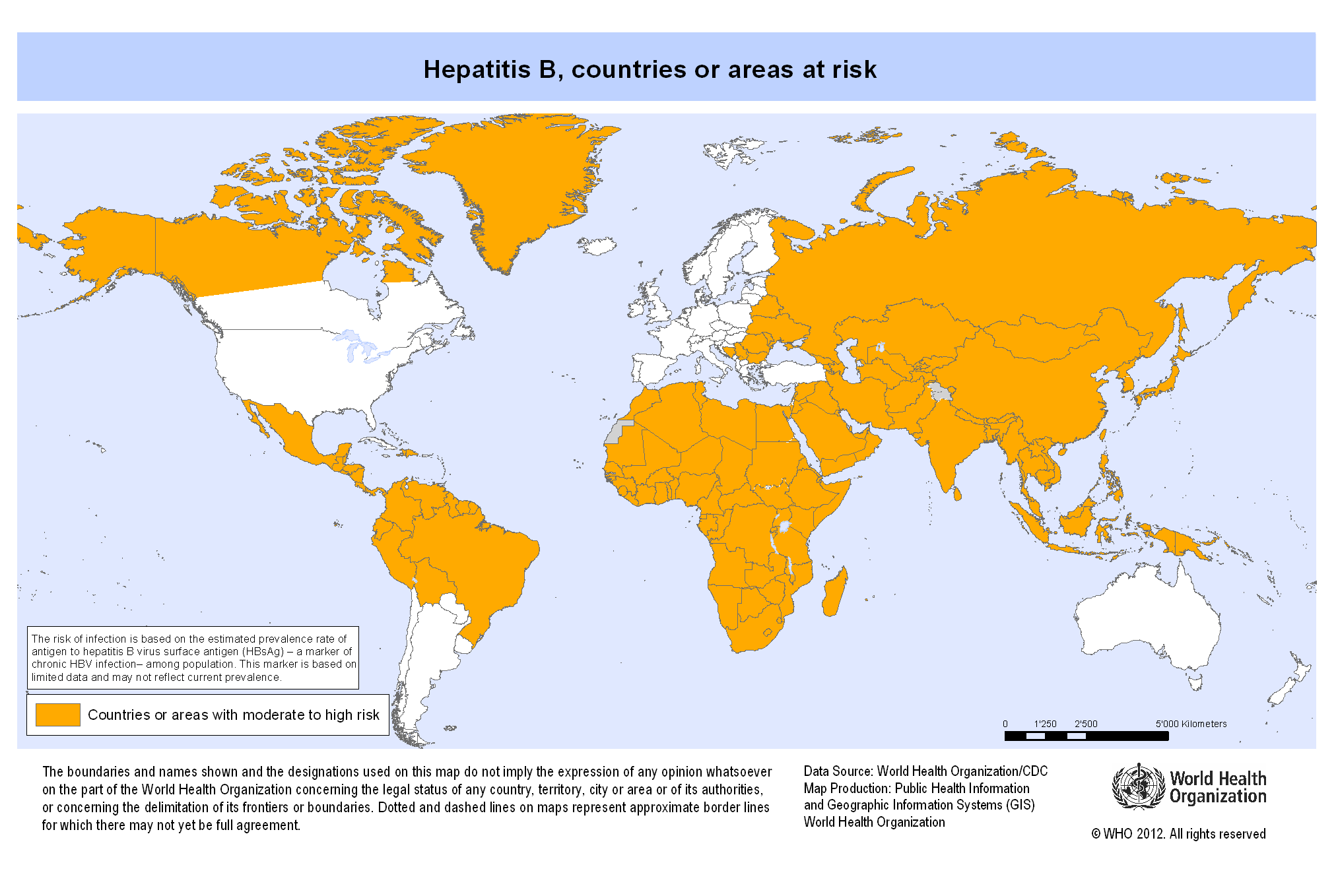 - Hépatite B : carte mondiale des pays ou zones à risque - 06/05/2012